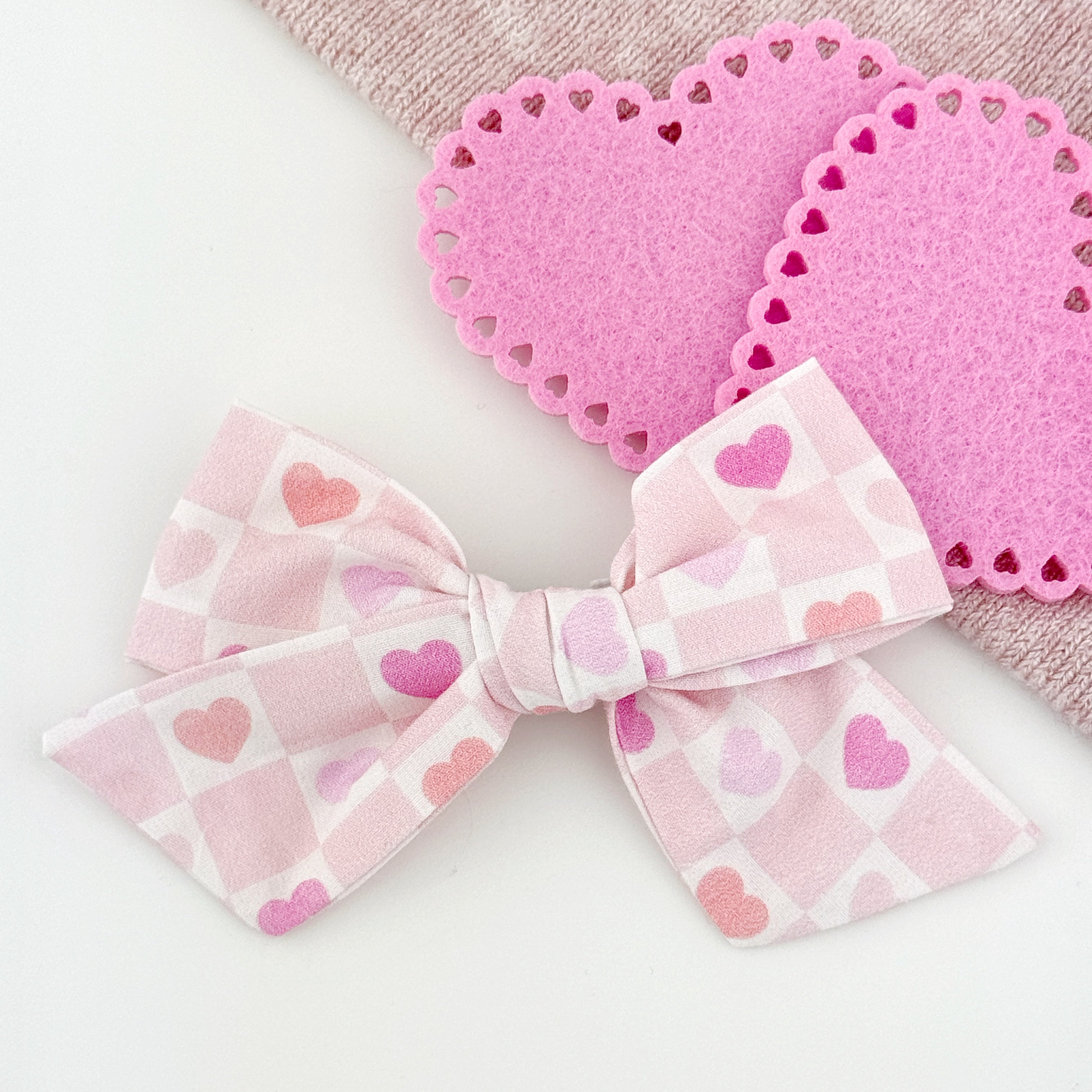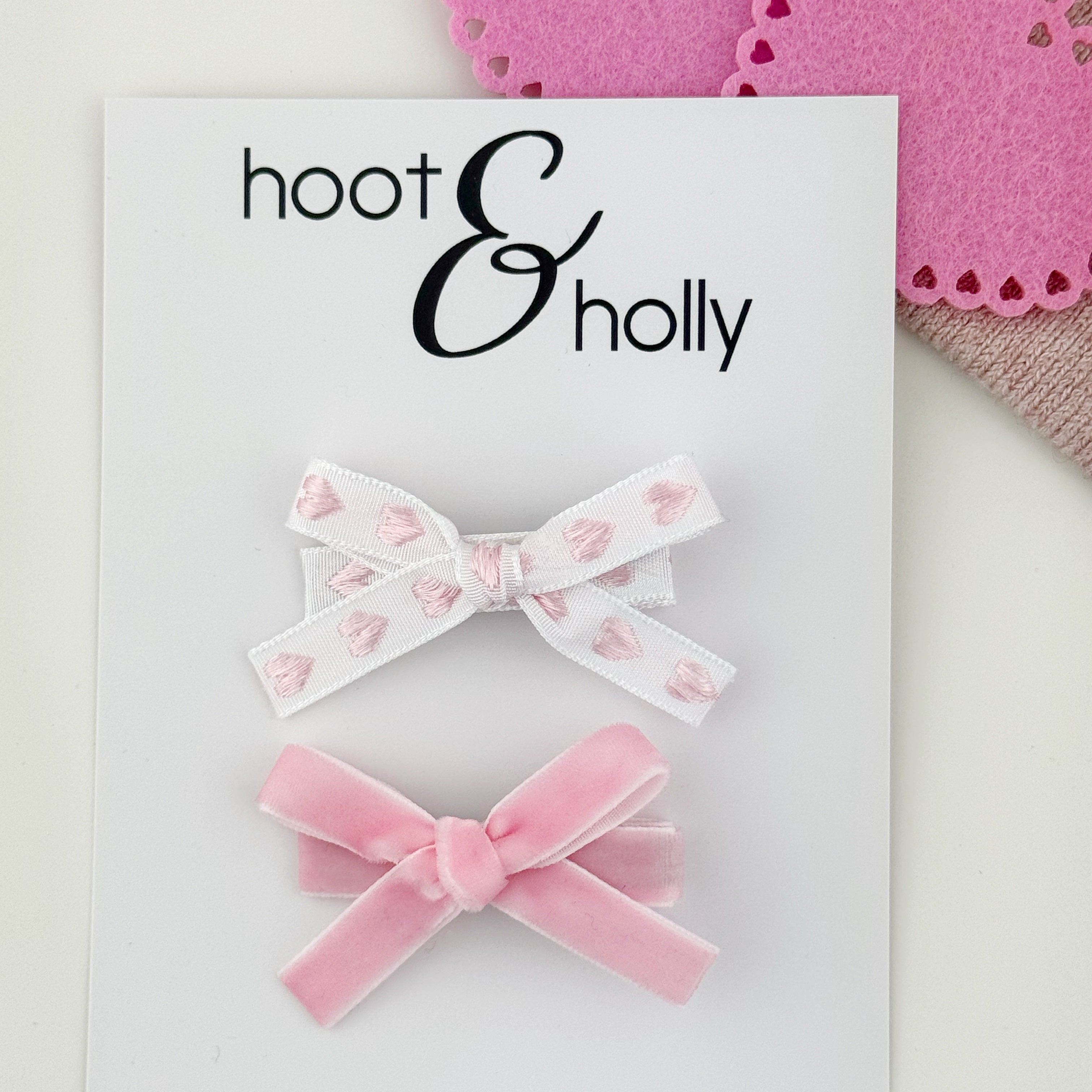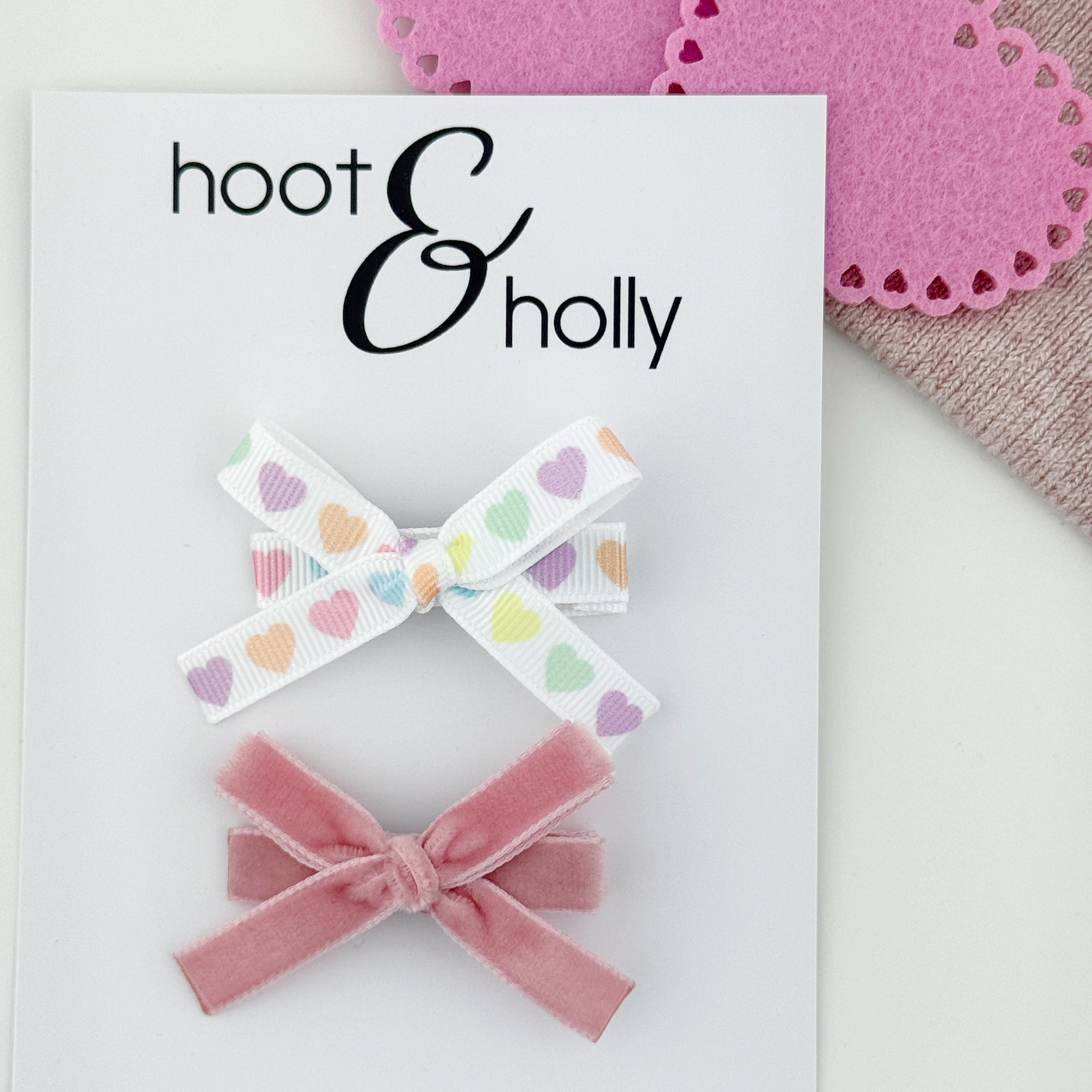 All hair bows are available on a nylon headband or two types of hair clips